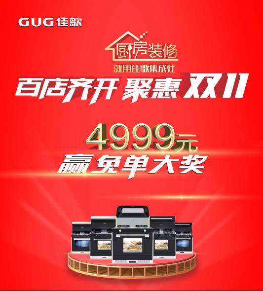 佳歌集成灶“4999免單大獎(jiǎng)等著你,寄希望于幾毛錢的紅包,不如走進(jìn)佳歌集成灶一次搞定一個(gè)廚房。