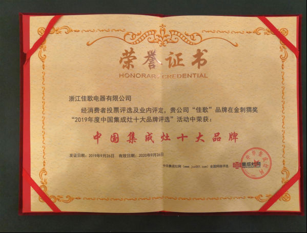 一直以來,佳歌集成灶始終致力于為千萬中國家庭創(chuàng)造健康、環(huán)保、科技、智能的綠色健康廚房。此次獲得“中國集成灶最具消費(fèi)者喜愛十大品牌”,是對(duì)佳歌的品牌、質(zhì)量、技術(shù)等方面最大的肯定。