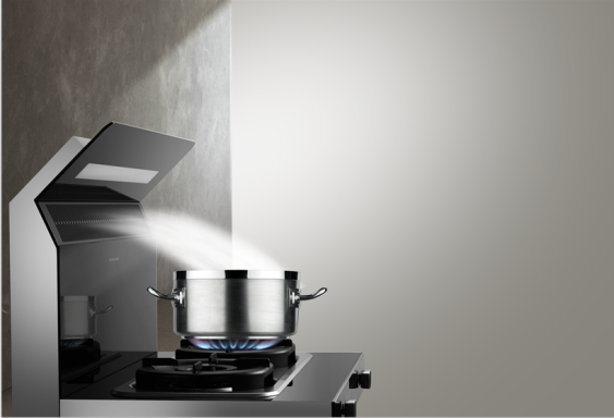 集成灶的側吸下排原理,近距離高效吸油煙,讓油煙無處可逃。同時,由于集成灶上部沒有煙機,做吊柜的自由度更高。