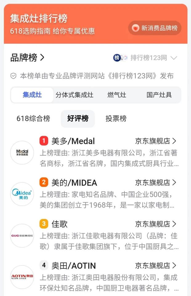 近日,佳歌集成灶榮登蓋得90測評認證NO.6,品牌享譽度再上新臺階。